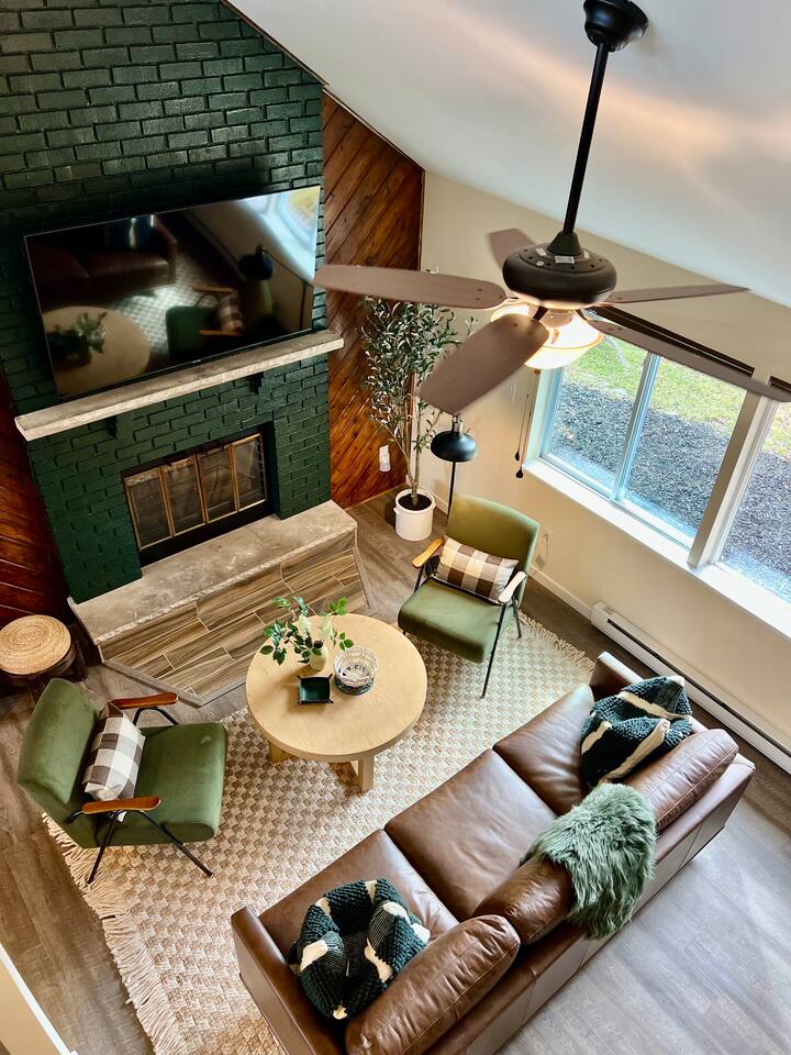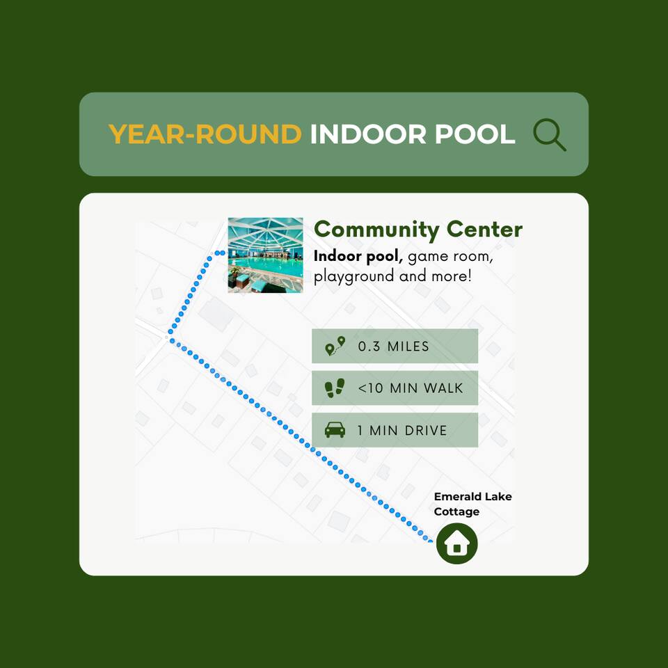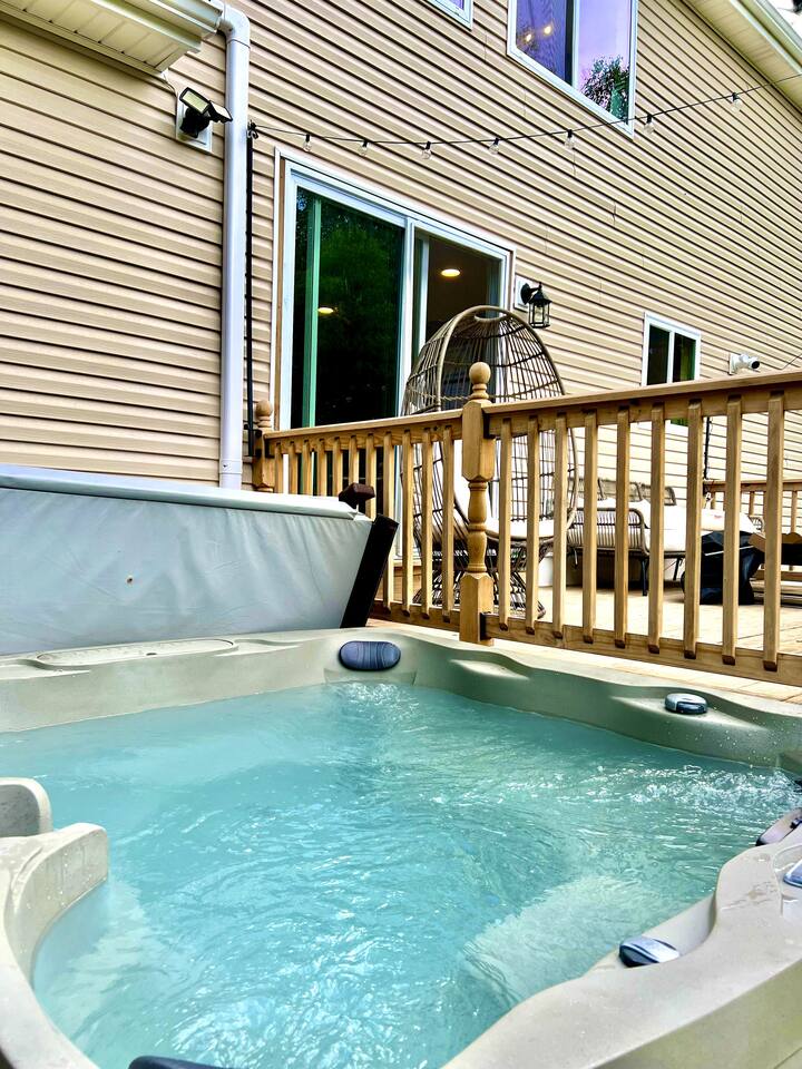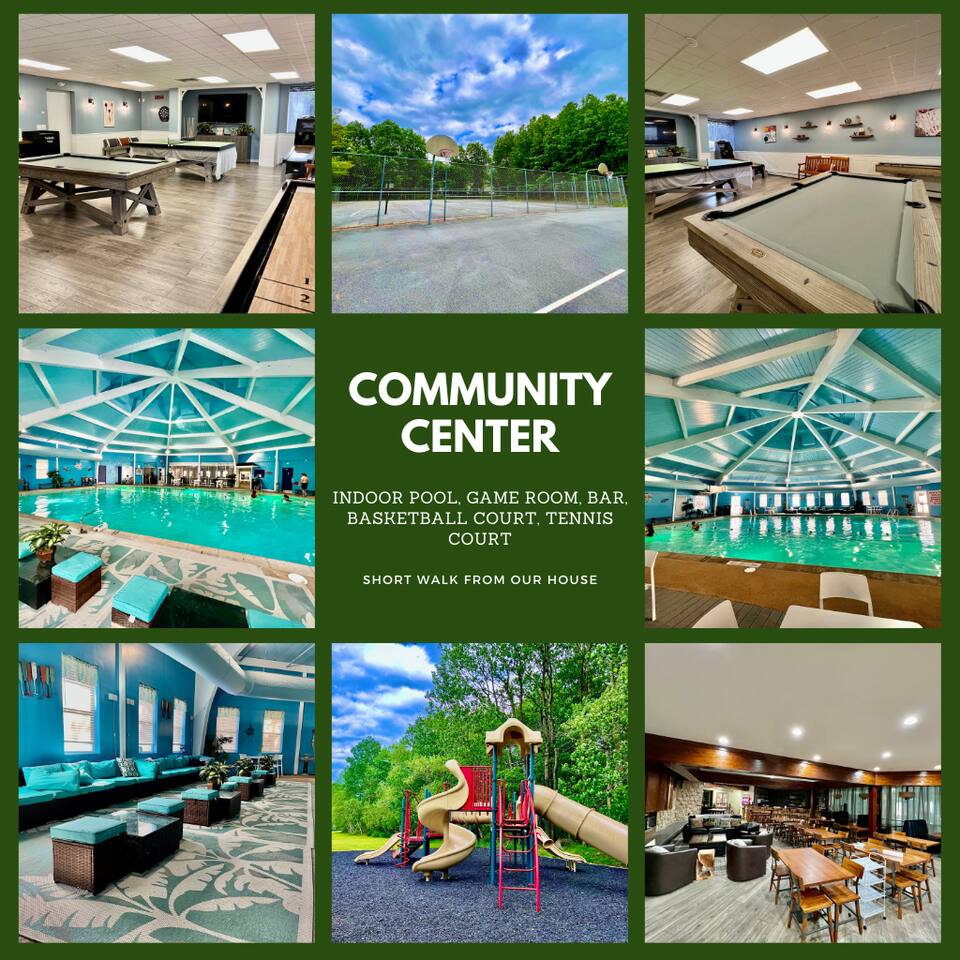 * 1600 sq * 3 bedroom + 1 sunroom with beds * Fully renovated with new furniture, beddings, games and more * Well-equipped kitchen and coffee station * Hot tub * Fireplace * Gas grill * Fire pit * 4 smart TVs * Smart lock * High-speed Wifi * COMMUNITY AMENITIES (w/ additional fee, paid on-site): Community indoor and outdoor pools, lake/beach access for boating (rental available), fishing and swimming, basketball court, tennis, playground. Indoor pool is all seasons. All other amenities are seasonal.