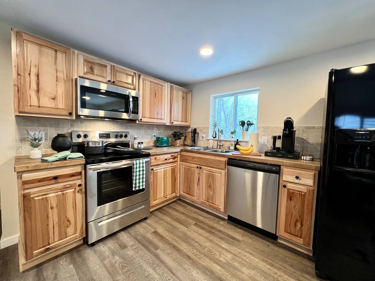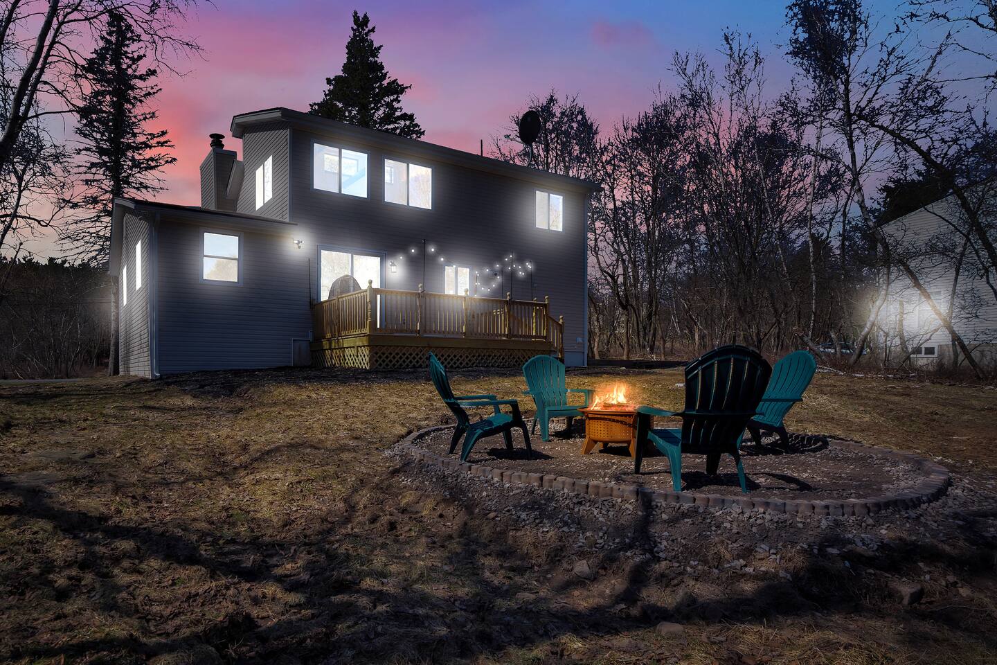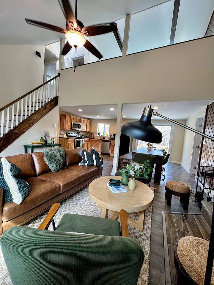 * 1600 sq * 3 bedroom + 1 sunroom with beds * Fully renovated with new furniture, beddings, games and more * Well-equipped kitchen and coffee station * Hot tub * Fireplace * Gas grill * Fire pit * 4 smart TVs * Smart lock * High-speed Wifi * COMMUNITY AMENITIES (w/ additional fee, paid on-site): Community indoor and outdoor pools, lake/beach access for boating (rental available), fishing and swimming, basketball court, tennis, playground. Indoor pool is all seasons. All other amenities are seasonal.