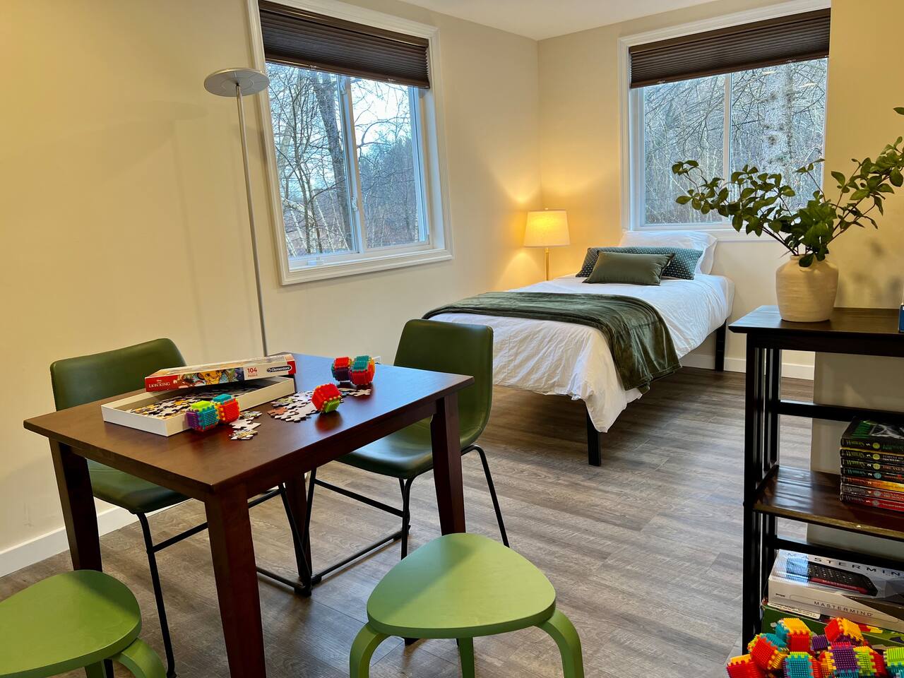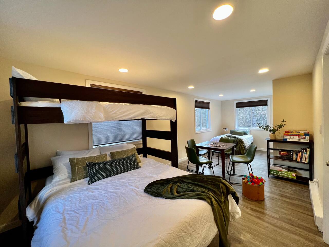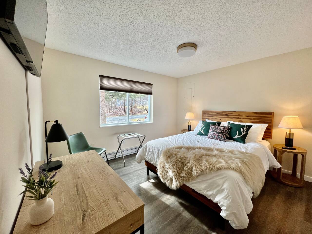 Emerald Lake Cottage, your modern getaway in the heart of the Poconos! ➤ Sleek furnishings with high quality beds and beddings ➤ Daily deer visits in our yards ➤ Near the community indoor heated pool ➤ 10 min from Camelback, Kalahari & state parks ➤ Pool table, ping pong and board games ➤ Hot tub, fireplace, propane grill and fireplace ➤ Baby gears: baby gates, crib, pack n play, high chair, changing table. Main booker needs to be age 25+ Lic #010192