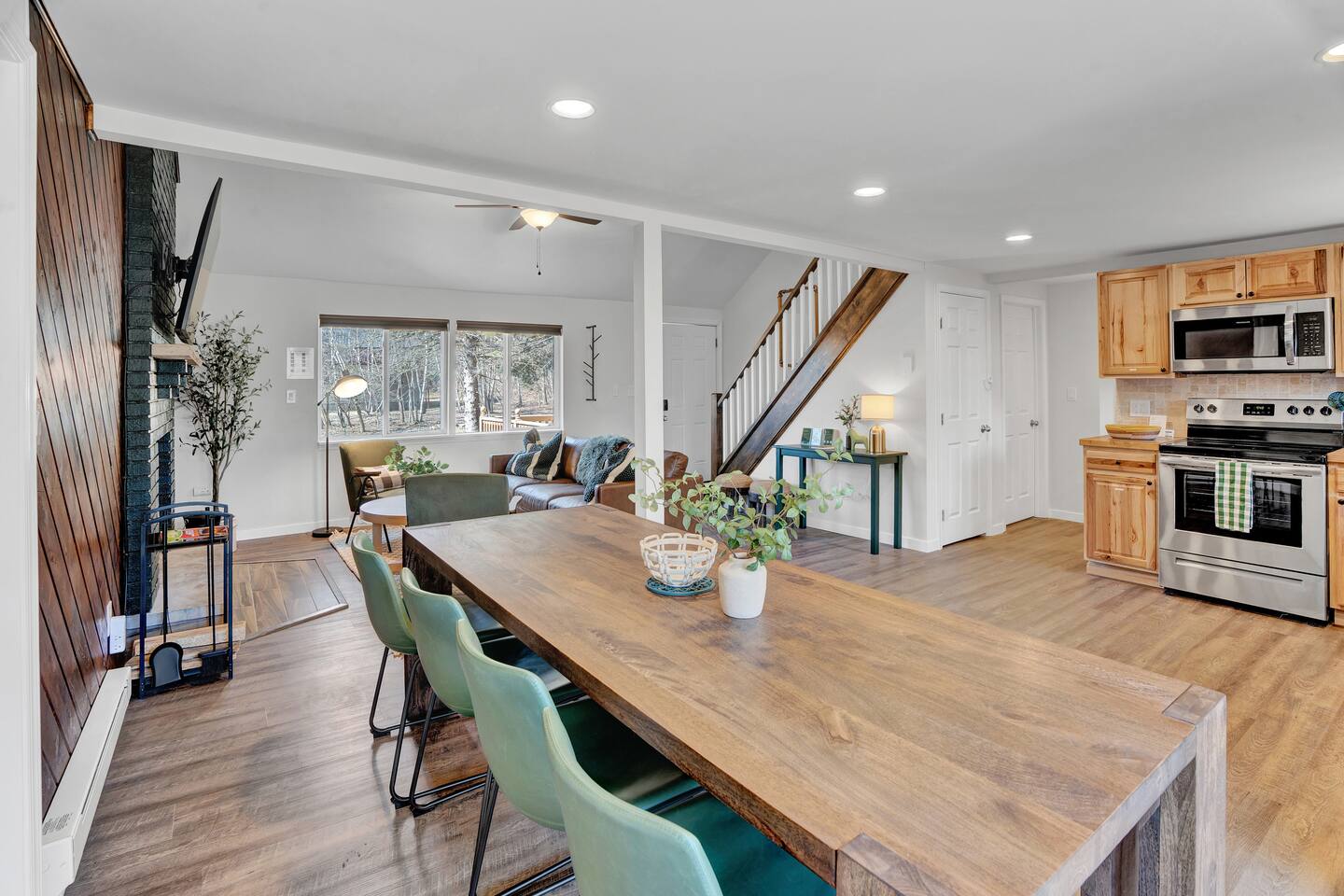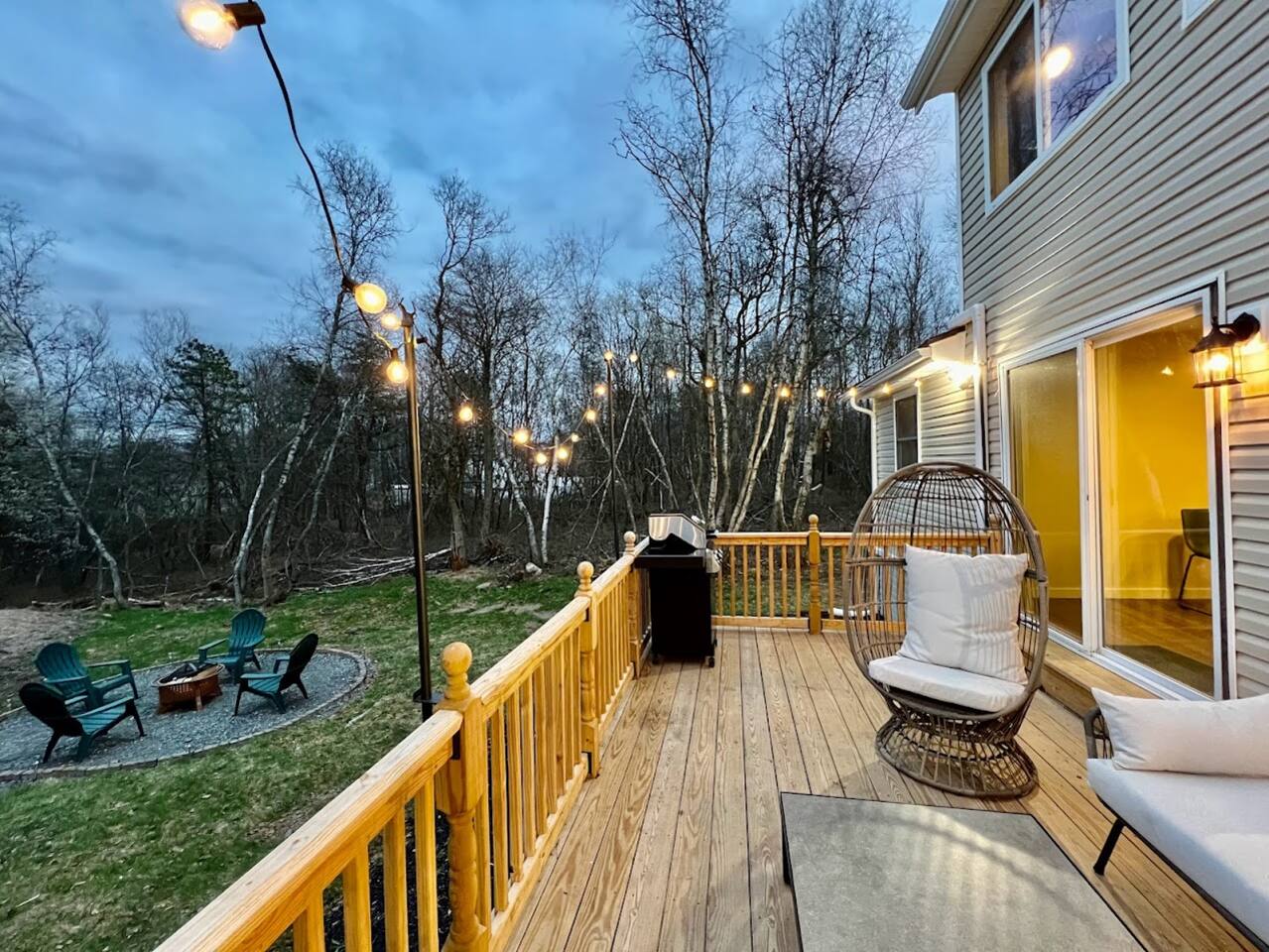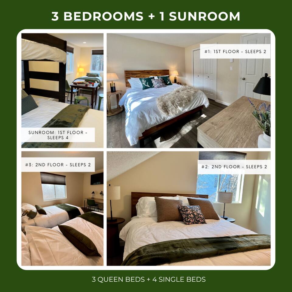Pool Table | Ping Pong | Wood Fireplace | Gas Grill | Fire Pit | High Speed WiFi | Board Games, Books | 4 Smart TVs | Smart Lock | AC in all rooms SLEEPING ARRANGEMENTS: Three bedrooms - » 1. First Floor Main Room: Queen Bed » 2. 2nd Floor Backyard-Facing Room: Queen Bed » 3. 2nd Floor Front-yard-Facing Room: Single Bed, Single Bed Additional sleeping space - » First Floor Sun Room: Queen Bed, Single Bed, Single Bed Top Bunk KITCHEN: Refrigerator, stove/oven, microwave, Keurig, kettle, toaster, spray oil, salt, pepper, cookware, dishware & flatware PARKING: Driveway (4 vehicles) Township Registration #010192 Minimum age to book is 25 years old.